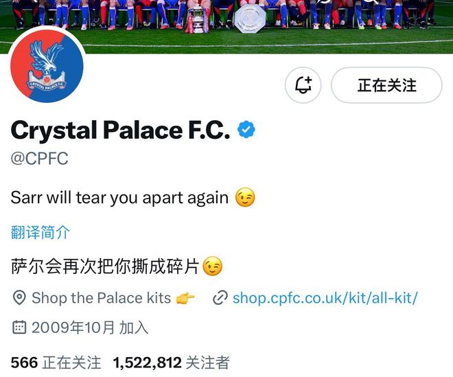 红军克星!水晶宫官媒修改简介:萨尔会再次将你们撕成碎片