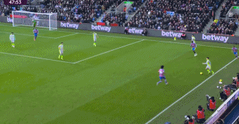 第41分钟,B席右路回做,努内斯斜传送到禁区后点,哈兰德头球攻门得手,曼城1-0水晶宫!哈兰德展现了超高效率,他在上半场比赛仅有9次触球、2次对方禁区内触球和1次射门,就取得了一粒进球!